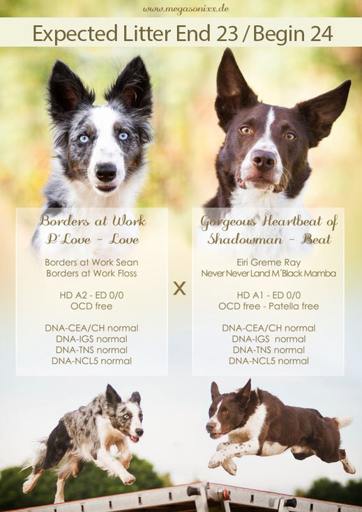 Wir erwarten in diesem Wurf Black merle Welpen mit und ohne tricolor und schwarz weiße Welpen mit und ohne tricolor.